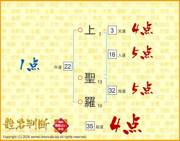 上聖羅さんの総運は35画の4点!