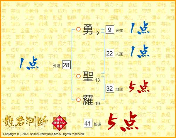 勇聖羅さんの地運は32画の5点!