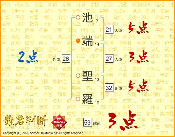 池端聖羅さんの総運は53画の3点!