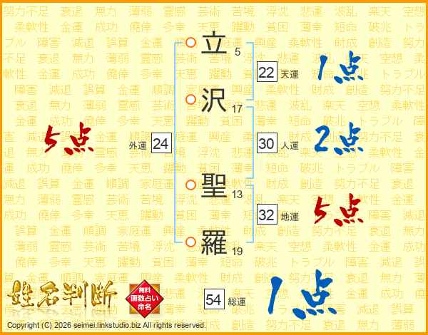 立(5画)沢(17画) 聖(13画)羅(19画)
