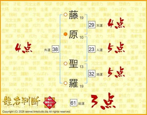 藤(19画)原(10画) 聖(13画)羅(19画)