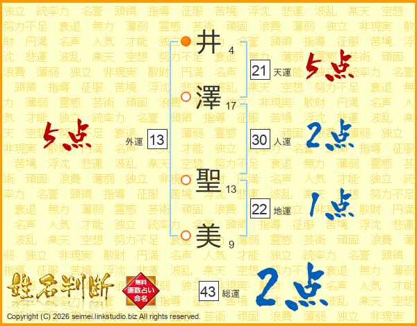 井澤聖美さんの天運は21画の5点!