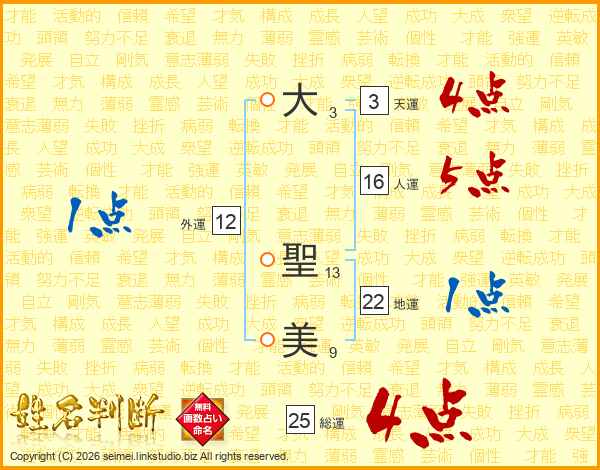 大聖美さんの総運は25画の4点!