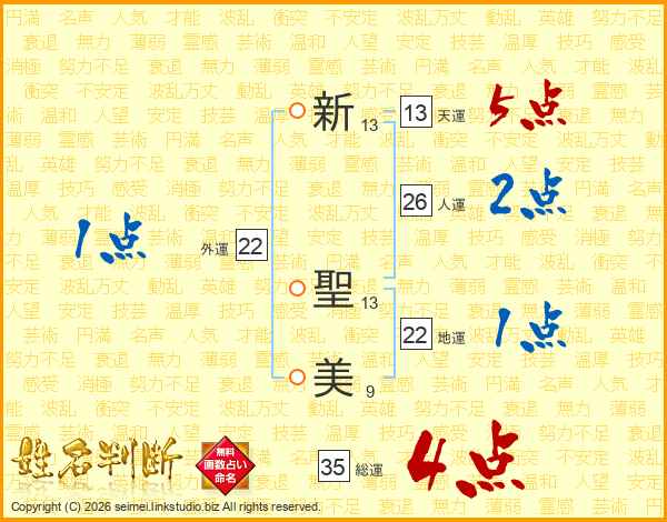 新聖美さんの総運は35画の4点!