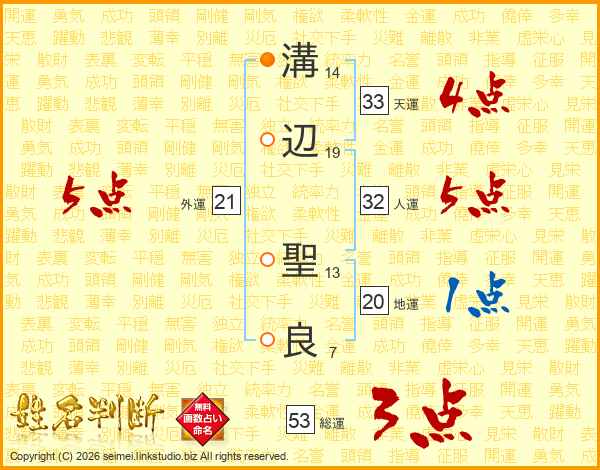 溝辺聖良さんの天運は33画の4点!
