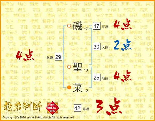 磯聖菜さんの総運は42画の3点!