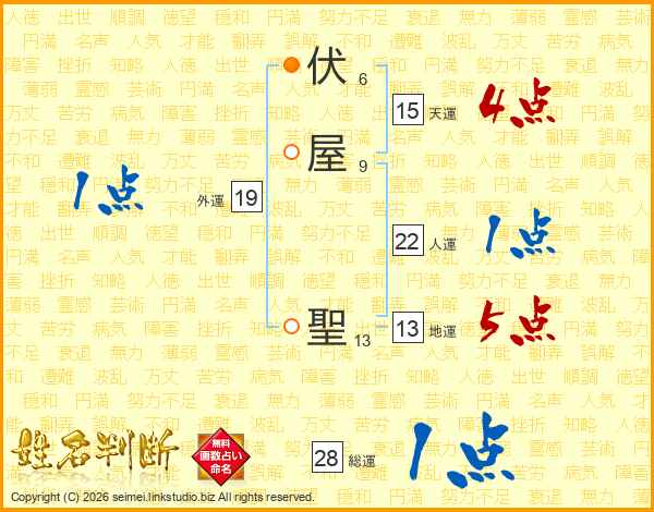 伏屋聖さんの総運は28画の1点!