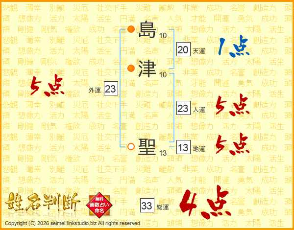 島津聖さんの総運は33画の4点!