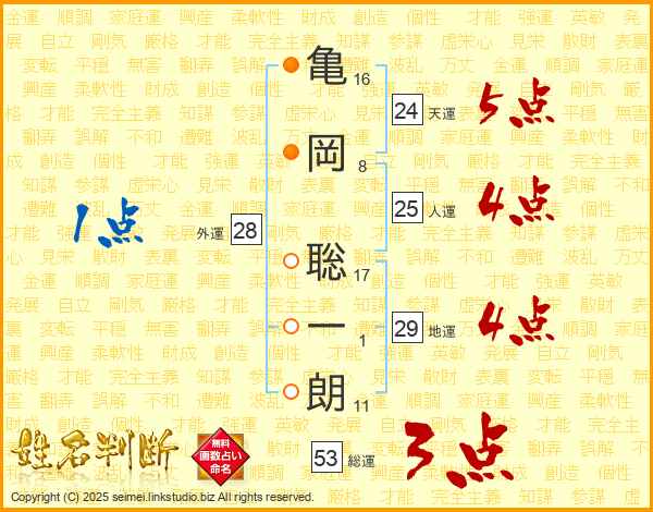 亀岡聡一朗さんの人運は25画の4点!