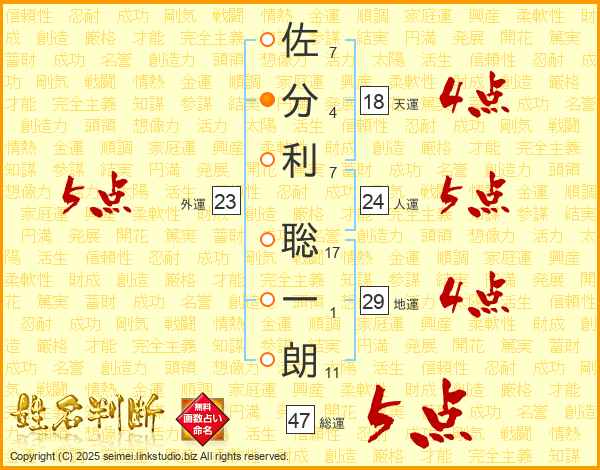 佐分利聡一朗さんの総運は47画の5点!
