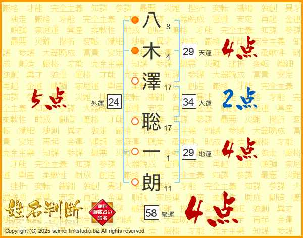 八(8画)木(4画)澤(17画) 聡(17画)一(1画)朗(11画)