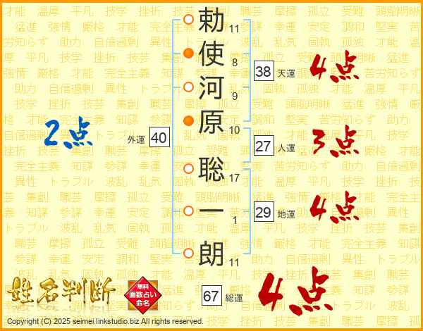勅使河原聡一朗さんの天運は38画の4点!