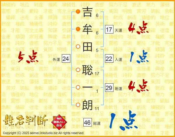 吉牟田聡一朗さんの天運は17画の4点!