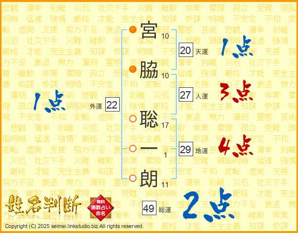 宮脇聡一朗さんの総運は49画の2点!