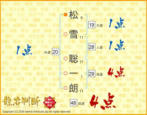 松雪聡一朗さんの総運は48画の4点!