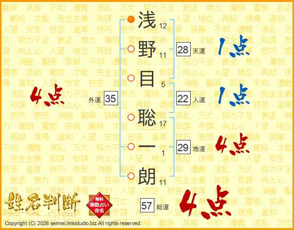 浅野目聡一朗さんの総運は57画の4点!