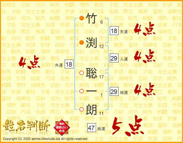 竹渕聡一朗さんの総運は47画の5点!
