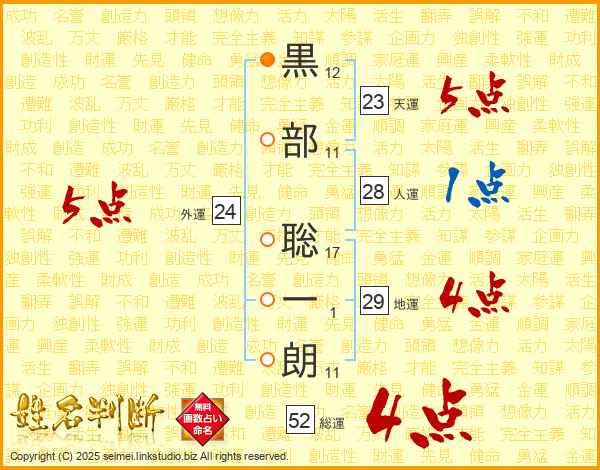 黒部聡一朗さんの総運は52画の4点!