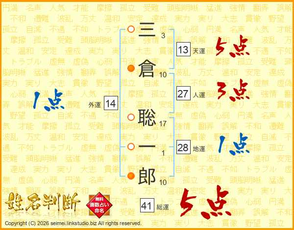 三倉聡一郎さんの総運は41画の5点!