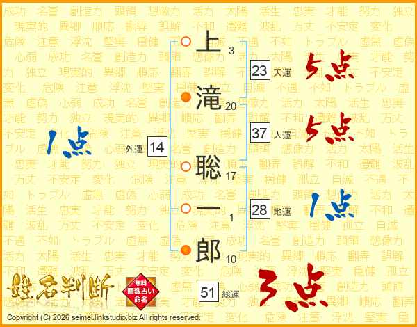 上滝聡一郎さんの天運は23画の5点!