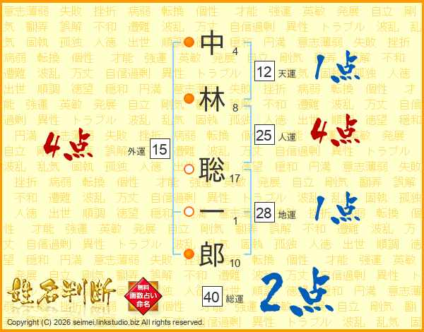 中林聡一郎さんの人運は25画の4点!