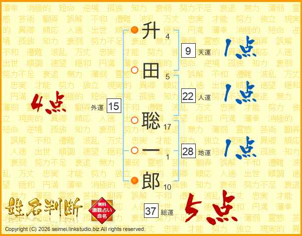 升田聡一郎さんの総運は37画の5点!