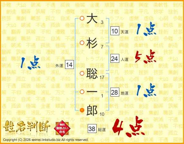 大杉聡一郎さんの総運は38画の4点!