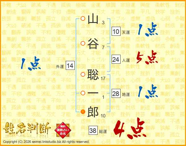 山谷聡一郎さんの総運は38画の4点!