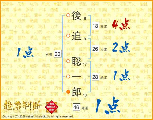 後(9画)迫(9画) 聡(17画)一(1画)郎(10画)