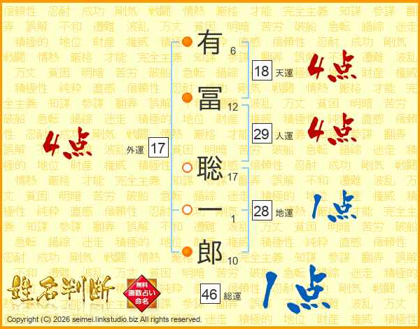 有冨聡一郎さんの総運は46画の1点!