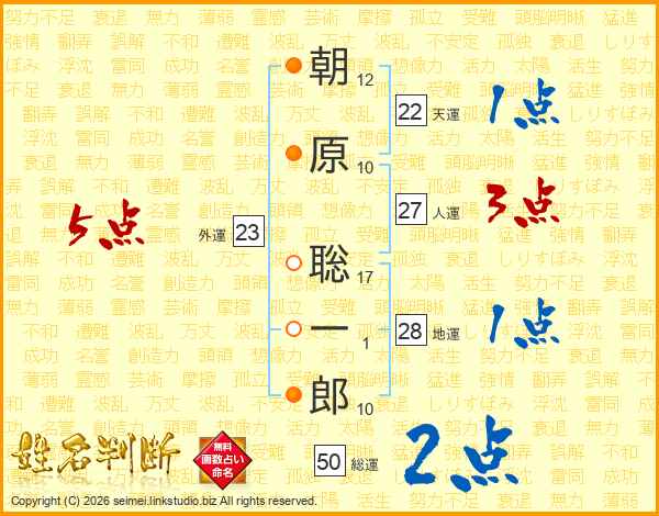 朝原聡一郎さんの天運は22画の1点!