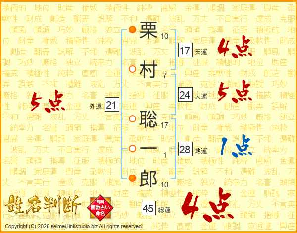 栗村聡一郎さんの天運は17画の4点!