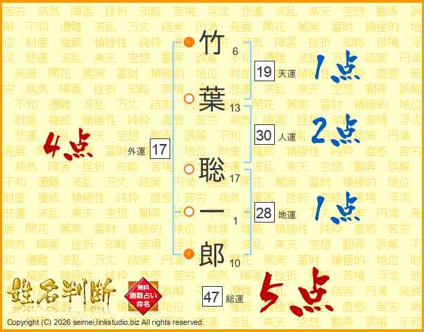 竹葉聡一郎さんの総運は47画の5点!