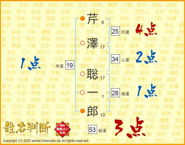 芹澤聡一郎さんの天運は25画の4点!