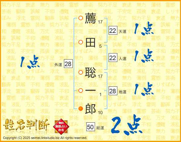 薦(17画)田(5画) 聡(17画)一(1画)郎(10画)