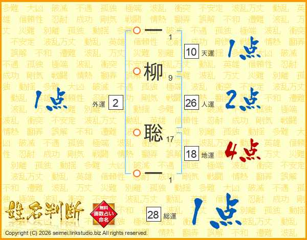 一柳聡一さんの人運は26画の2点!
