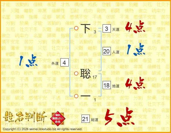 下聡一さんの総運は21画の5点!