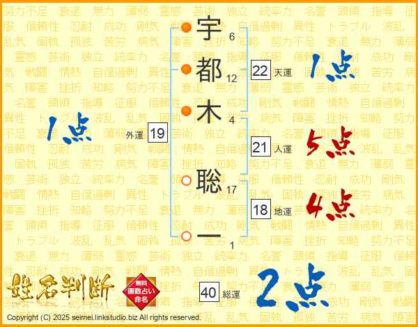 宇(6画)都(12画)木(4画) 聡(17画)一(1画)