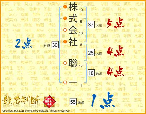 株式会社聡一さんの人運は25画の4点!