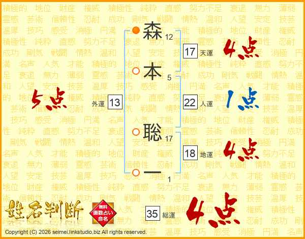 森本聡一さんの総運は35画の4点!