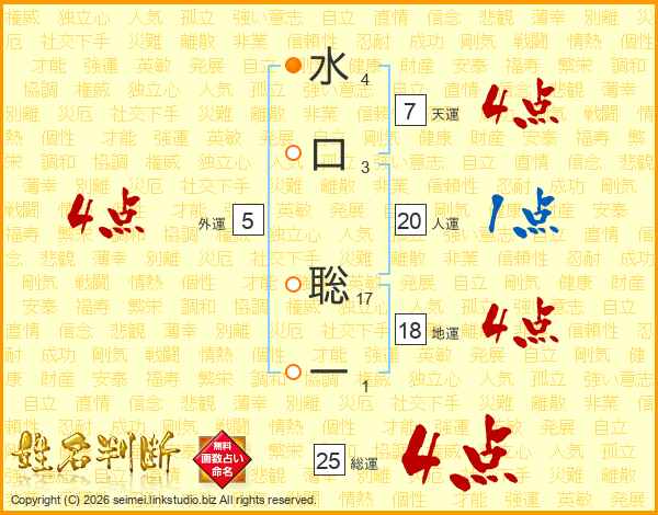 水(4画)口(3画) 聡(17画)一(1画)