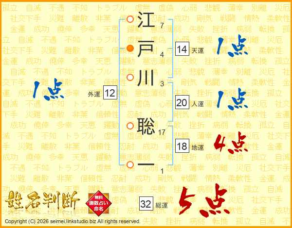 江(7画)戸(4画)川(3画) 聡(17画)一(1画)