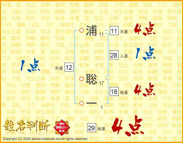 浦聡一さんの総運は29画の4点!