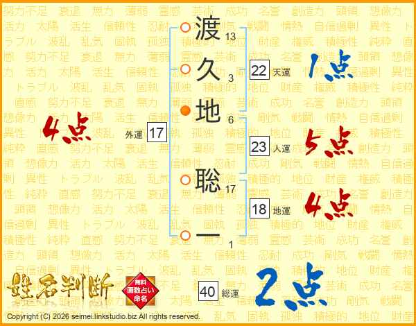 渡久地聡一さんの総運は40画の2点!