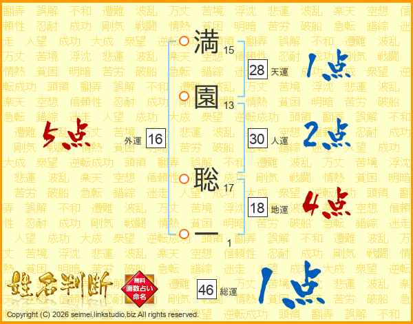 満園聡一さんの総運は46画の1点!