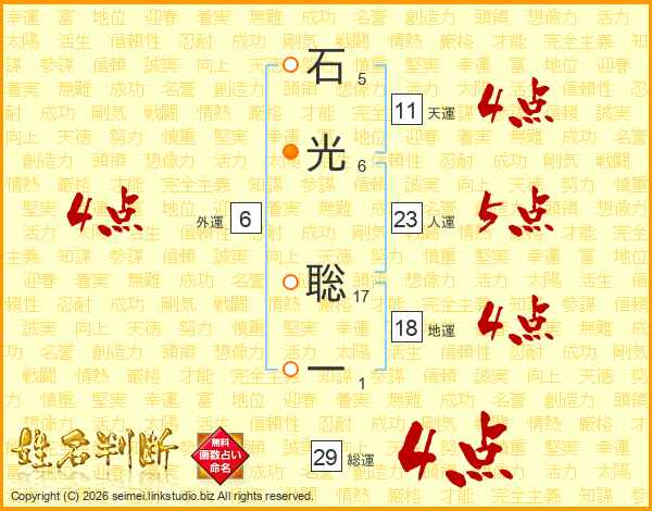 石光聡一さんの総運は29画の4点!