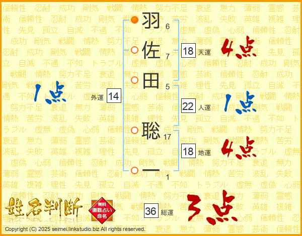羽佐田聡一さんの総運は36画の3点!