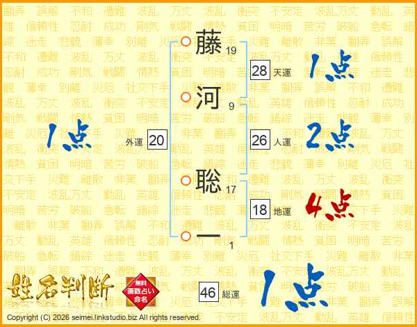 藤河聡一さんの総運は46画の1点!