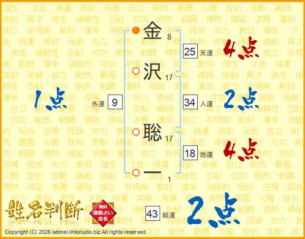 金沢聡一さんの総運は43画の2点!