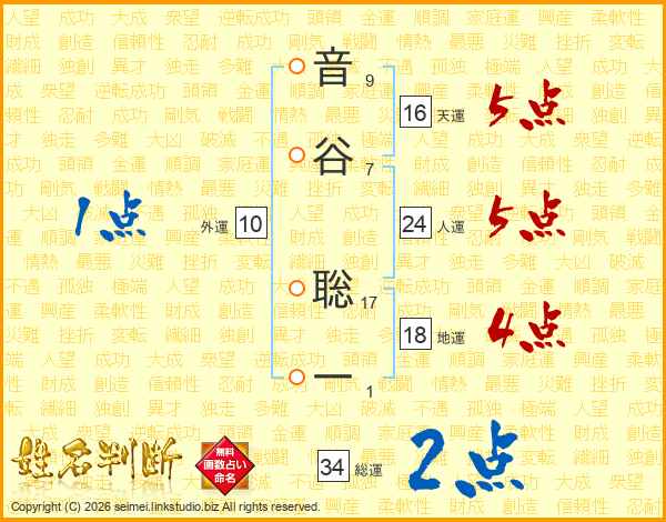 音谷聡一さんの総運は34画の2点!